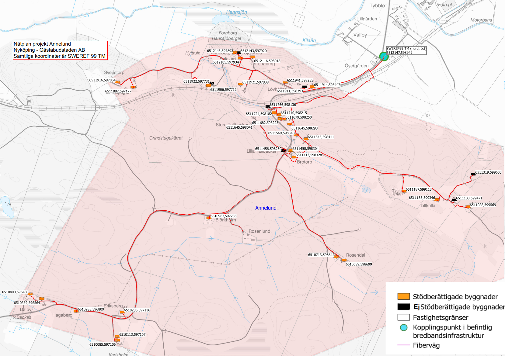 Projektet berör 40 byggnader i ett område sydväst om Jönåker. Klicka på kartan högst upp på sidan.