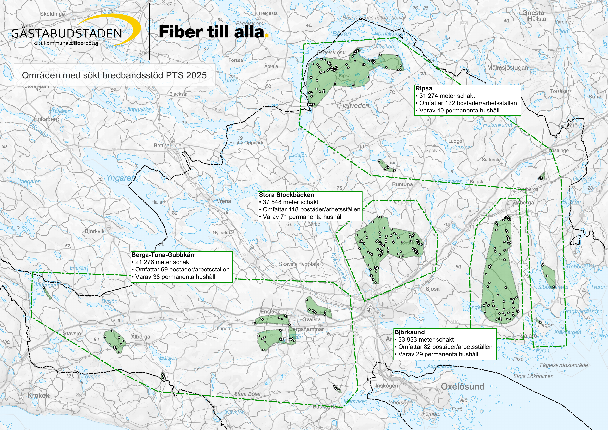 Den 27 augusti lämnade Gästabudstaden in en ansökan om stöd för fortsatt utbyggnad av bredband på landsbygden inom Nyköpings kommun. Post- och telestyrelsen (PTS), som handlägger stödet, beräknas lämna beslut om tilldelning i slutet av november 2025.