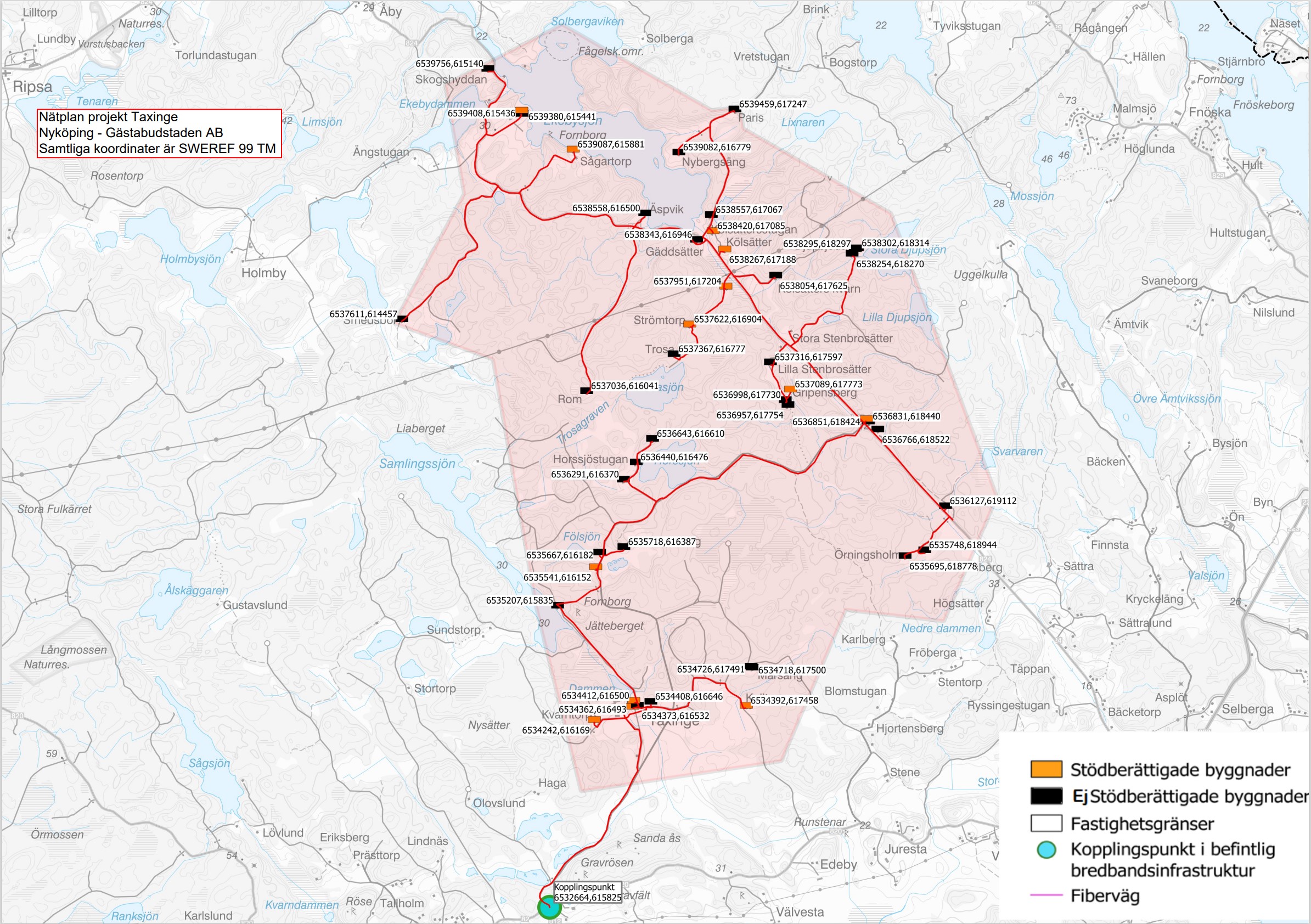 Projektet berör 45 byggnader i ett område från Taxinge i söder till Ripsa-Ekeby i norr. Klicka på kartan högst upp på sidan.